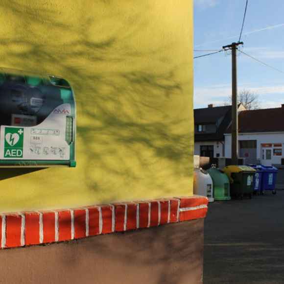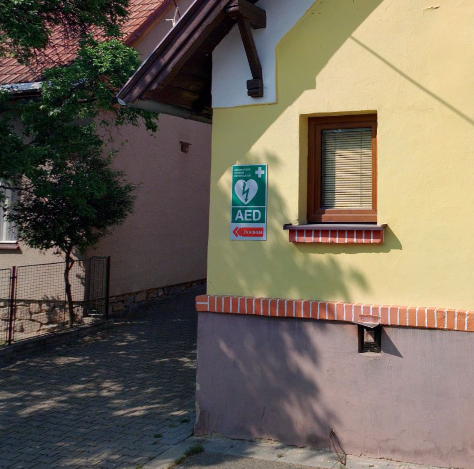 Ve Voděradech je AED umístěn ve vyhřívaném boxu na boční zdi hasičské zbrojnice. Na čelní zdi zbrojnice visí informativní tabulka "AED za rohem" pro jeho snazší nalezení. Schránka je chráněna číselným kódem proti zneužití. V případě, že potřebujete AED použít, volejte Zdravotnickou záchrannou službu pod číslem 155, která Vám sdělí kód k otevření schránky.